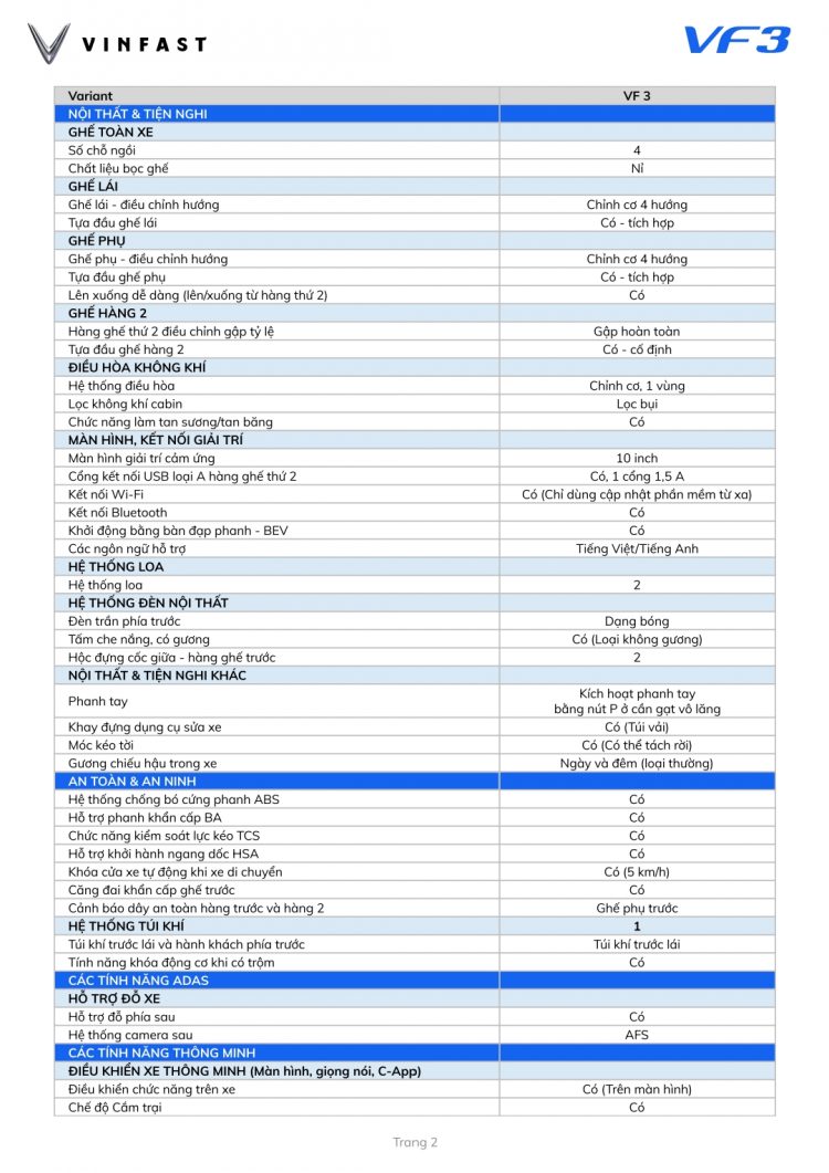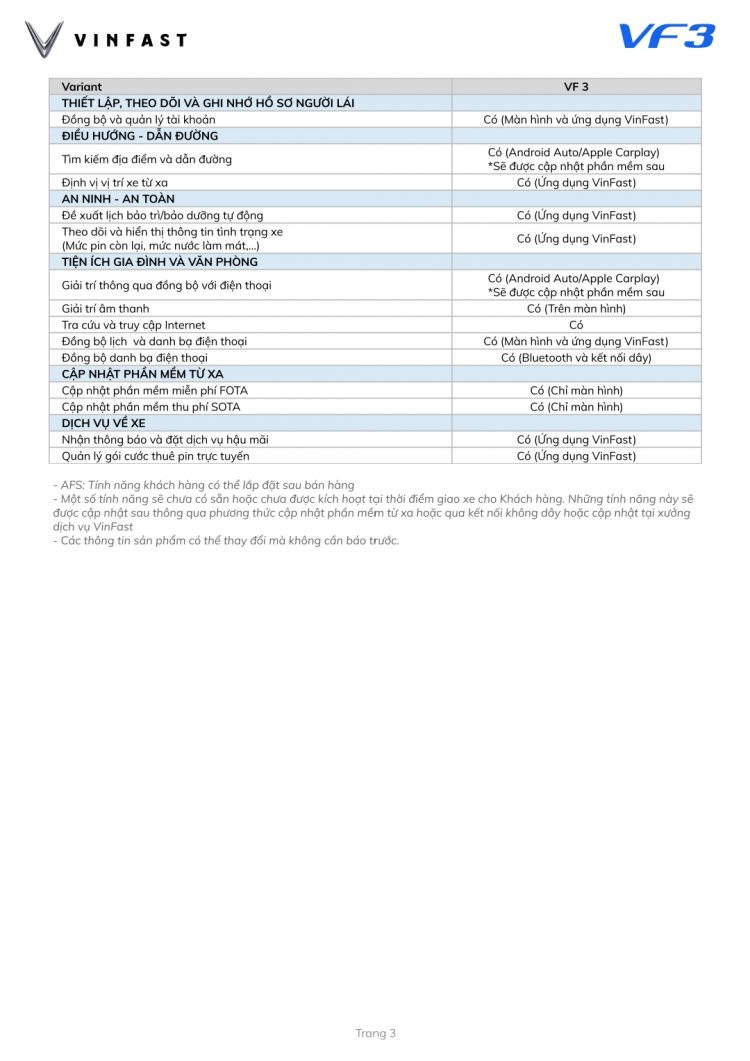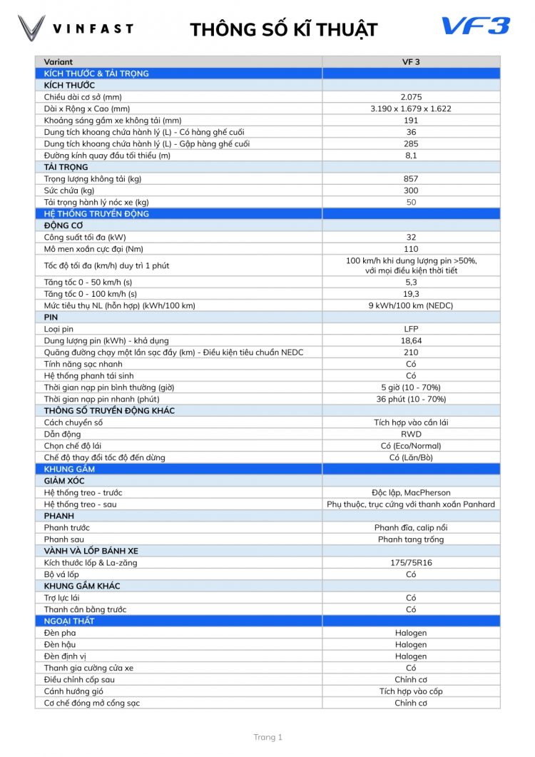 Vượt lên trên một phương tiện di chuyển thông thường, VinFast VF 3 là biểu tượng mới mang tính cách mạng trong cuộc sống đô thị. Với thiết kế hiện đại, hiệu suất vận hành linh hoạt, tính năng an toàn tiên tiến, cùng chi phí vận hành siêu rẻ, VF 3 sẽ mở ra một cách tiếp cận hoàn toàn mới trong việc lựa chọn phương tiện di chuyển hàng ngày, mang lại sự thuận tiện, dễ dàng và đặc biệt thoải mái cho tất cả mọi người.